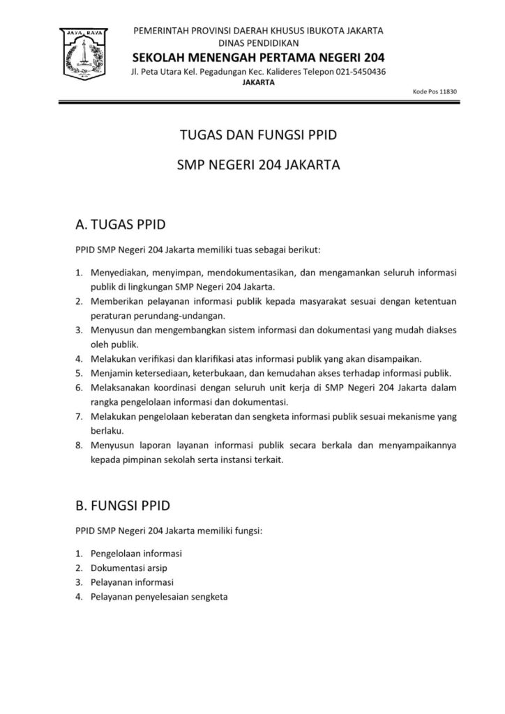 Tugas dan Fungsi PPID SMP Negeri 204 Jakarta