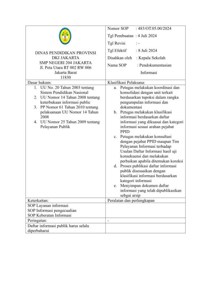 SOP Penetapan dan Pemutakhiran DIP